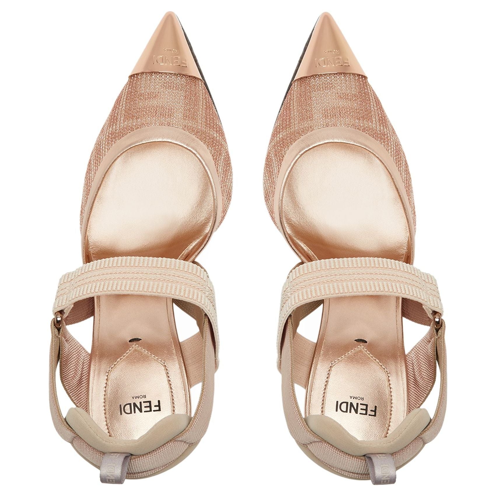 Chaussures à bride arrière Colibrì, aux lignes fuselées et féminines, avec des rubans élastiques enveloppant le pied. La semelle est complétée par une partie en relief en caoutchouc. En micro filet avec motif FF et détails en cuir lamé assorti. Bout en métal . Le coussinet rembourré et le crochet de trekking ajoutent une touche sportive. Talon émaillé. Fabriqué en Italie