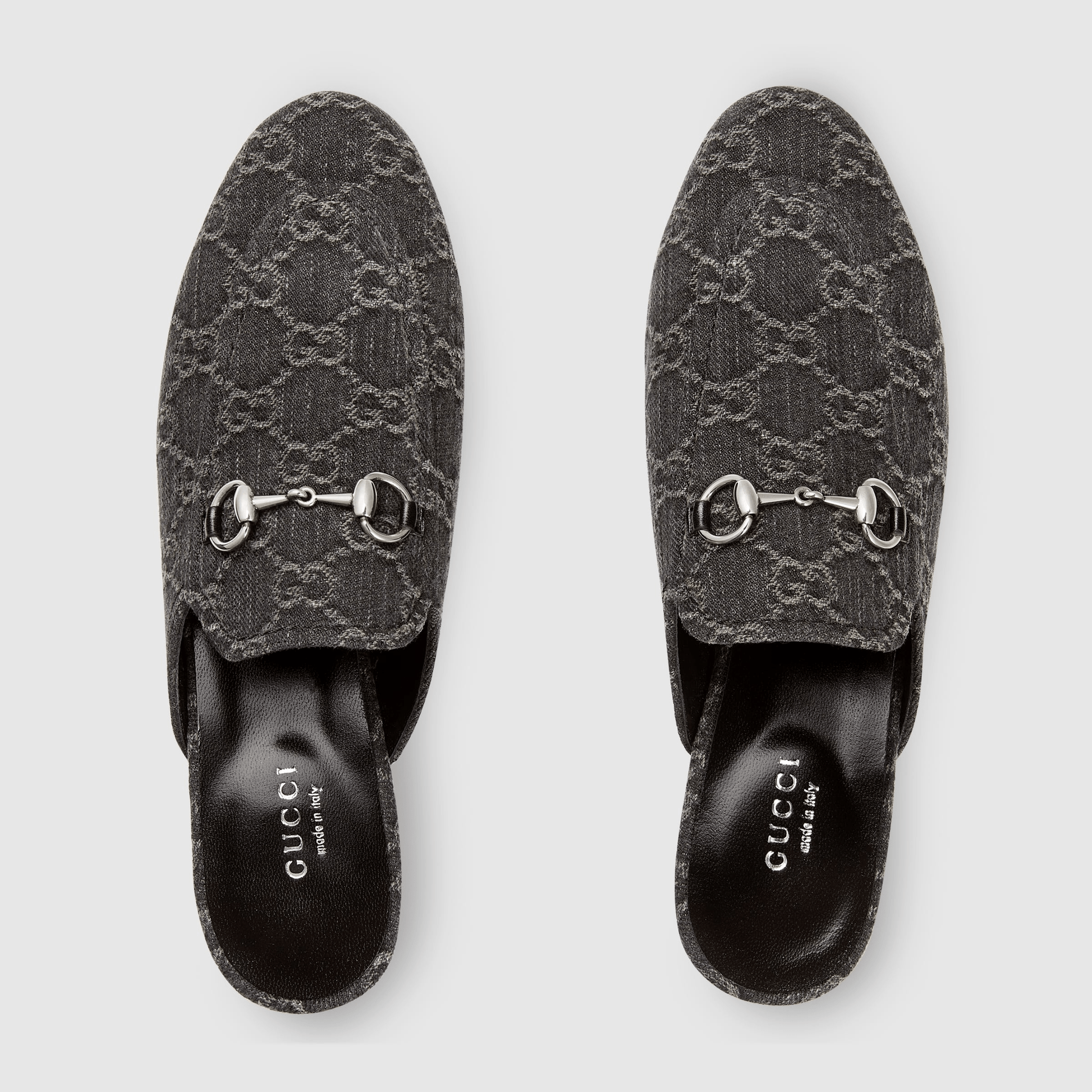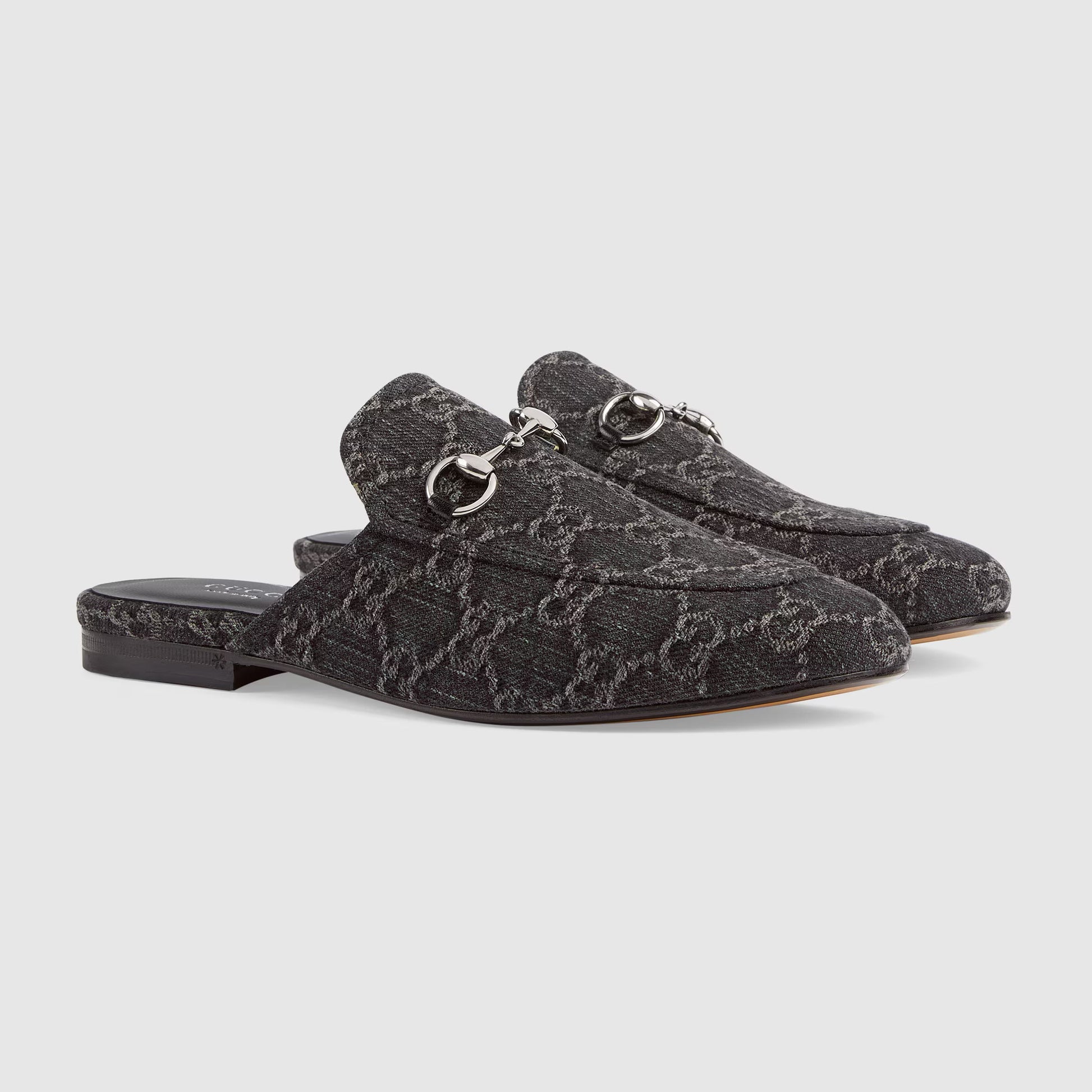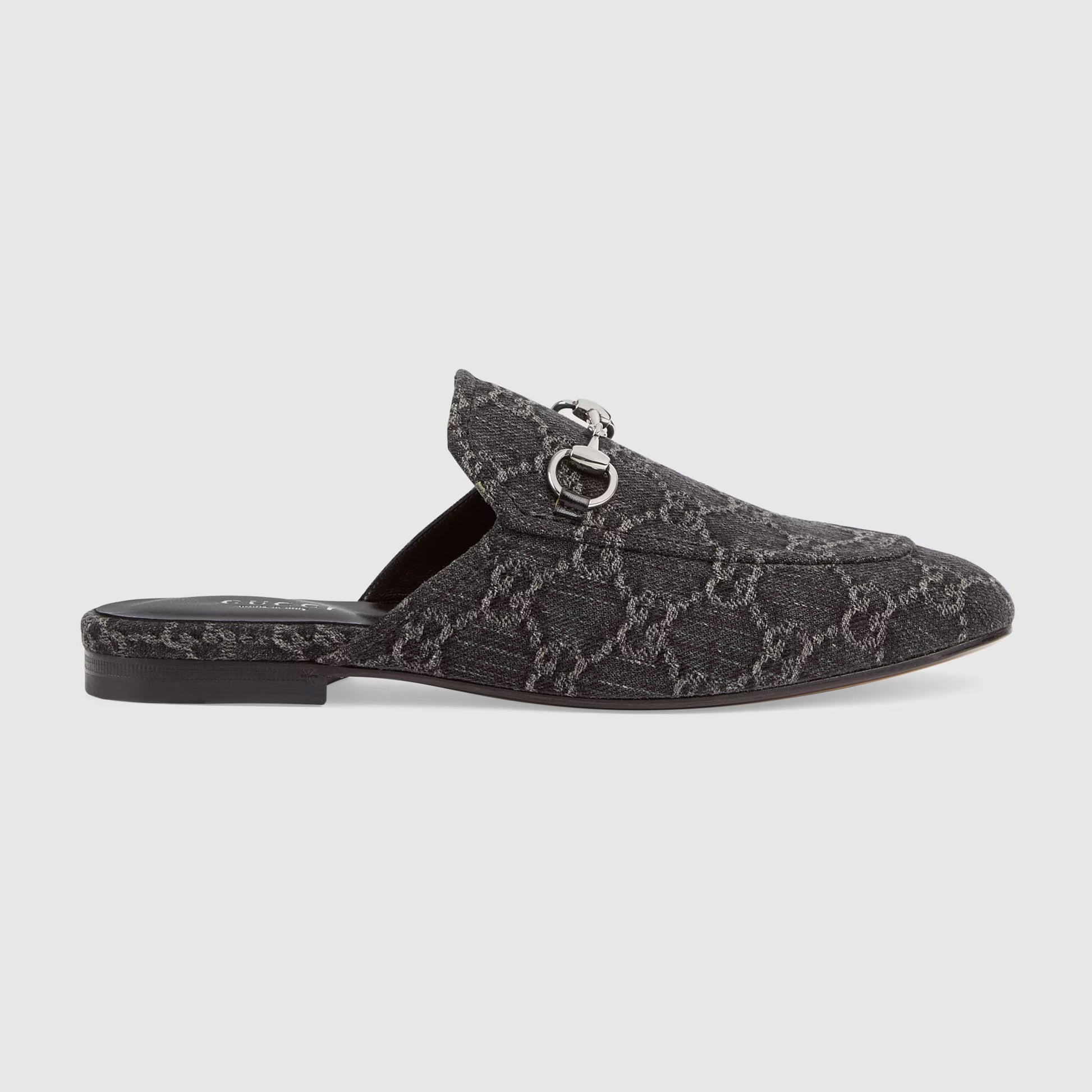 Découvrez les célèbres Mules Gucci - Princetown, un incontournable de la collection Gucci. Avec son design moderne et original, cette pantoufle réinvente le mocassin avec ses détails en Horsebit. Fabriquée en denim GG noir et gris, elle offre un style hors du commun pour un look élégant et branché.