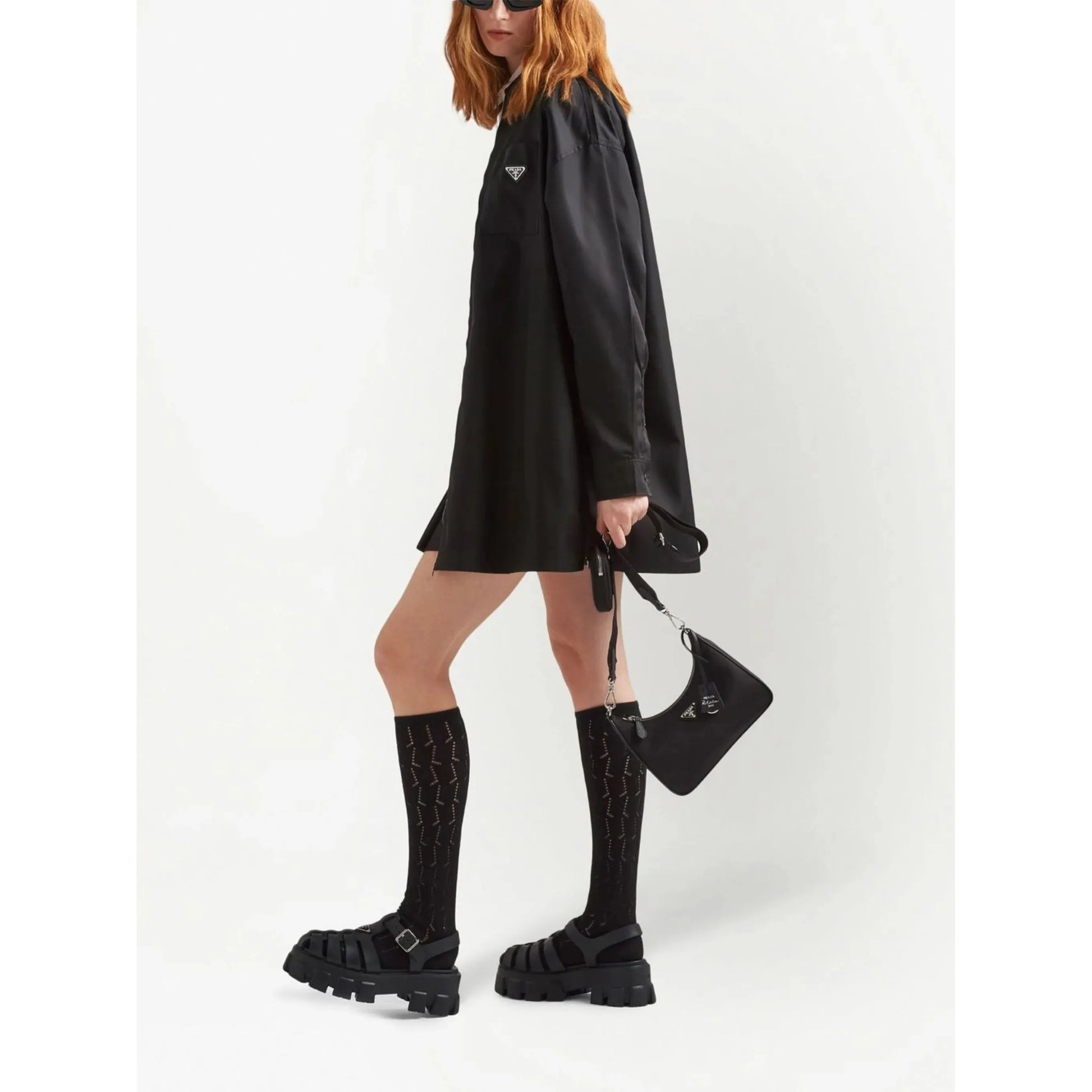 Le Sac Prada est un accessoire incontournable avec son logo triangulaire en émail et ses finitions en métal argenté. Doté d'une bride porté épaule détachable et ajustable ainsi qu'une pochette détachable, il offre une fonctionnalité pratique au quotidien. La fermeture zippée sur le dessus garantit la sécurité de vos affaires dans son compartiment principal spacieux.