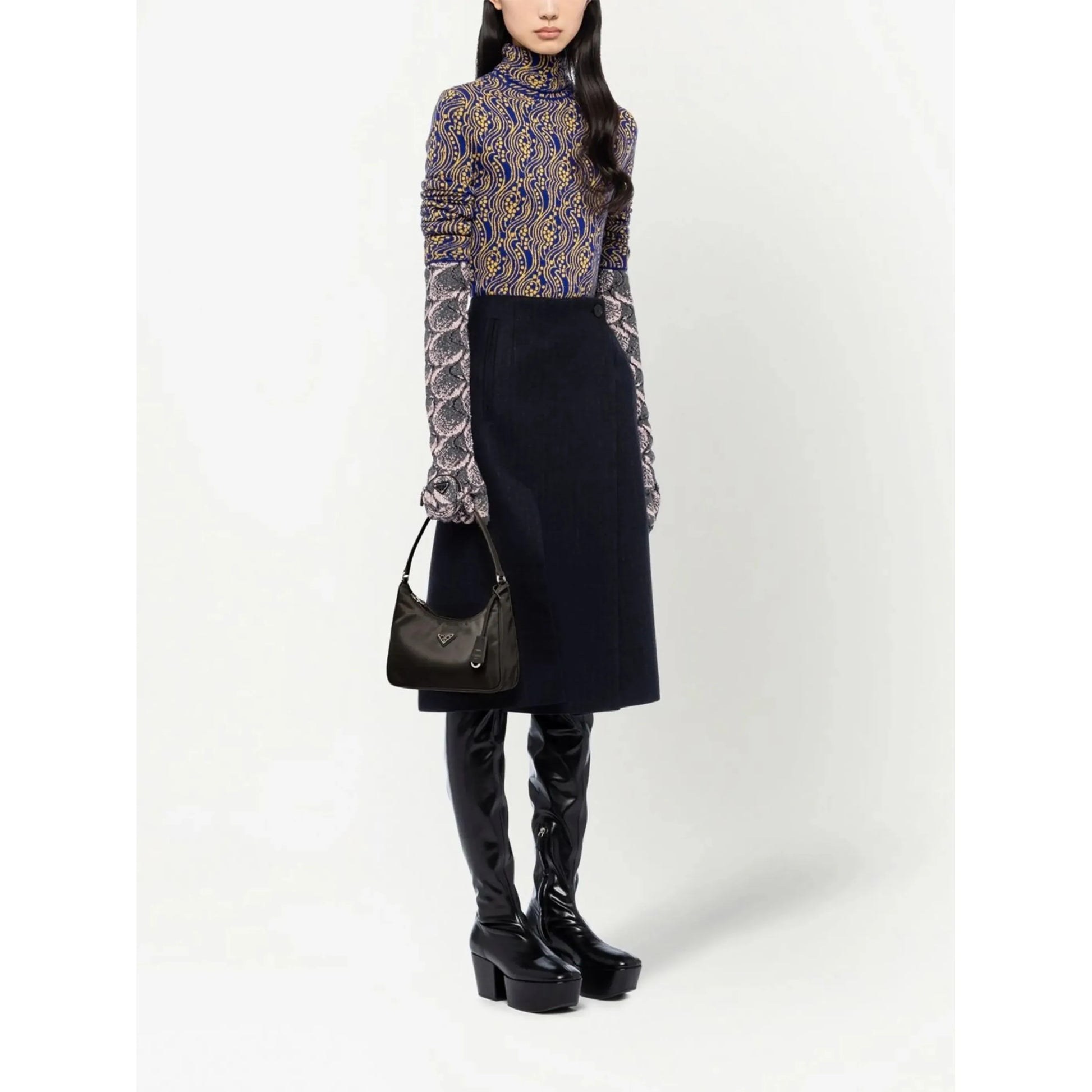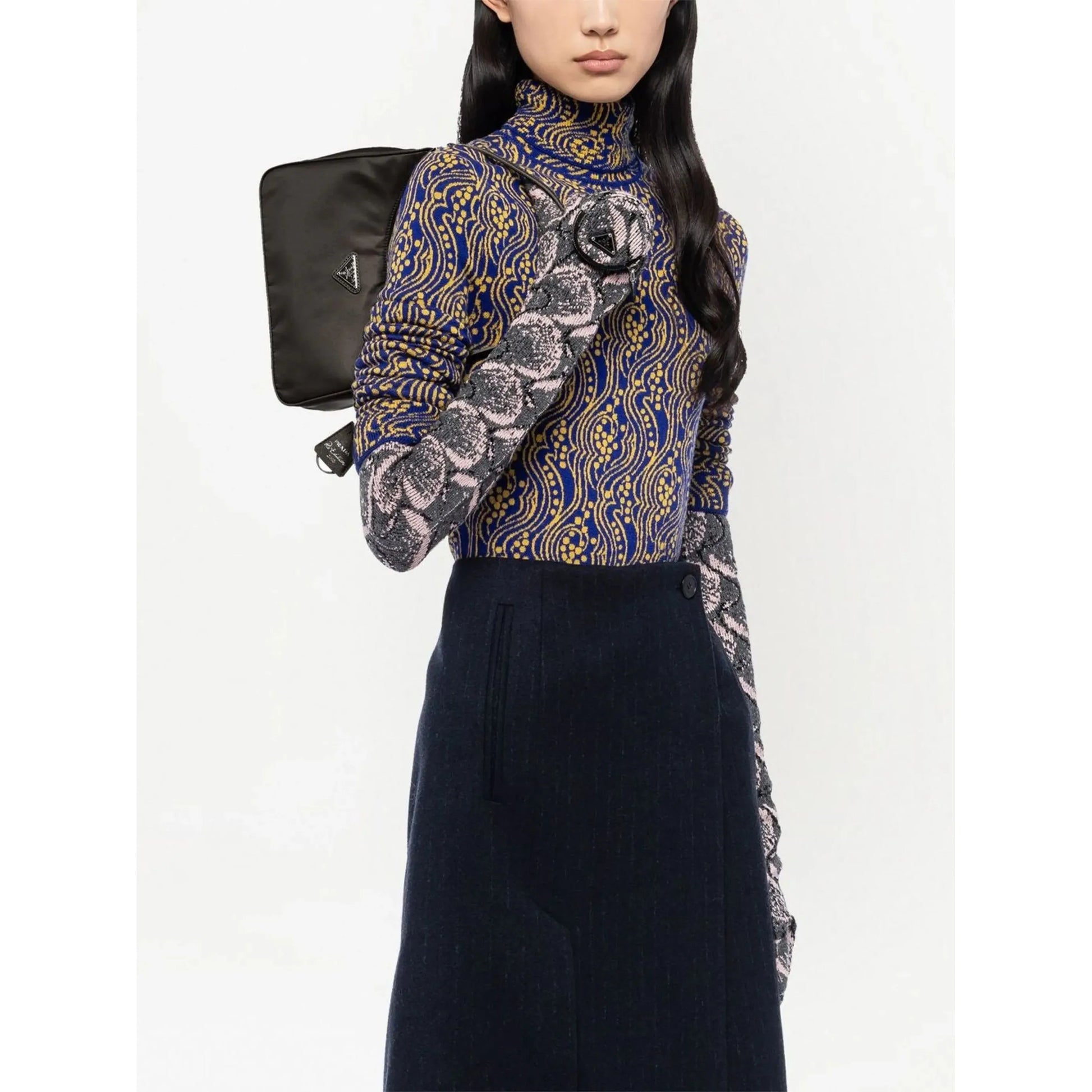 Ce Sac Prada noir est un accessoire élégant et pratique. Sa plaque logo apporte une touche de sophistication, tandis que sa fermeture zippée sur le dessus assure la sécurité de vos affaires. Avec son compartiment principal spacieux et son anse classique, il est idéal pour une utilisation quotidienne ou pour une soirée spéciale.